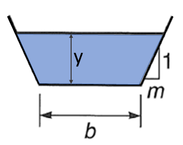 The geometrical relationships for a trapezoid are: \[\begin{equation} A=(b+my)y \tag{5.6} \end{equation}\]